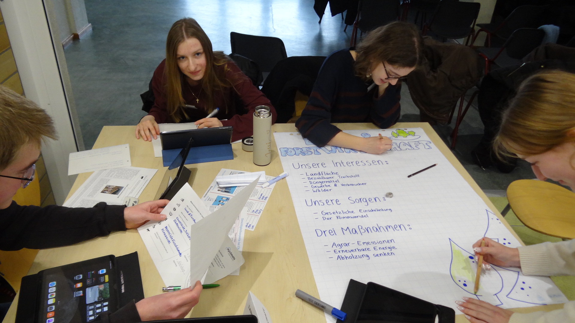 Die Hans Hermann Voss-Stiftung hatte es der Realschule Steinberg ermöglicht, einen Projekttag mit der Organisation „Myclimate – Klimakonferenzsituation“ durchzuführen. Der Tag begann mit einem Film über die Auswirkungen des Hochwassers im Jahr 2021 im Ahrtal. So sensibilisiert, konnten die Lernenden sich mit dem Thema Klimaschutz und internationale Klimapolitik auseinandersetzen. Dazu erhielten sie Zugang zu einem digitalen Tool, welches bisher nur den teilnehmenden Vertretern der Staaten der jährlichen Weltklimakonferenz zur Verfügung stand. Nachdem wissenschaftlich dargestellt worden war, welche Folgen jede Zehntelgraderhöhung des Klimas auf unsere Umwelt hat, einigten sich die Schüler*innen darauf, dass das Zwei-Gradziel der Pariser Klimakonferenz bis Ende des Jahrhunderts am sinnvollsten ist. Um dies zu erreichen, mussten die Schüler*innen überlegen, welche Maßnahmen in den Bereichen Energieversorgung, Transport und Verkehr, Gebäude und Industrie, Wachstum, Kohlendioxidentfernung und anderen Quellen von Treibhausgasen. Das Programm wies graphisch und auch in Zahlen genau aus, welche Maßnahmen in welchem Umfang welche Wirkung gegen eine weltweite Klimaerwärmung bewirken. Da die Maßnahmen für jeden eine Veränderung seines gewohnten Lebensstils bedeuten, verliefen die Diskussionen der Interessenvertreter sehr belebt. Letztendlich gelang es am Ende des Tages aber doch, eine gemeinsame Lösung zu finden, die Erderwärmung zu stoppen. Abschließend waren sich alle einig, dass dies nur gelingen kann, wenn alle dazu bereit sind, ihren Beitrag dazu zu leisten.